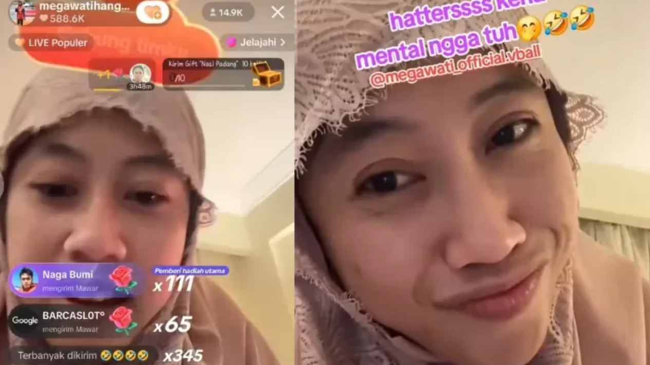 “Aku di Korea latihan tiga bulan, kalian nggak tahu bagaimana perjuanganku sampai nangis-nangis,” ucap Mega dengan nada tinggi, seperti dikutip dari akun TikTok @Megawatihangestrip.