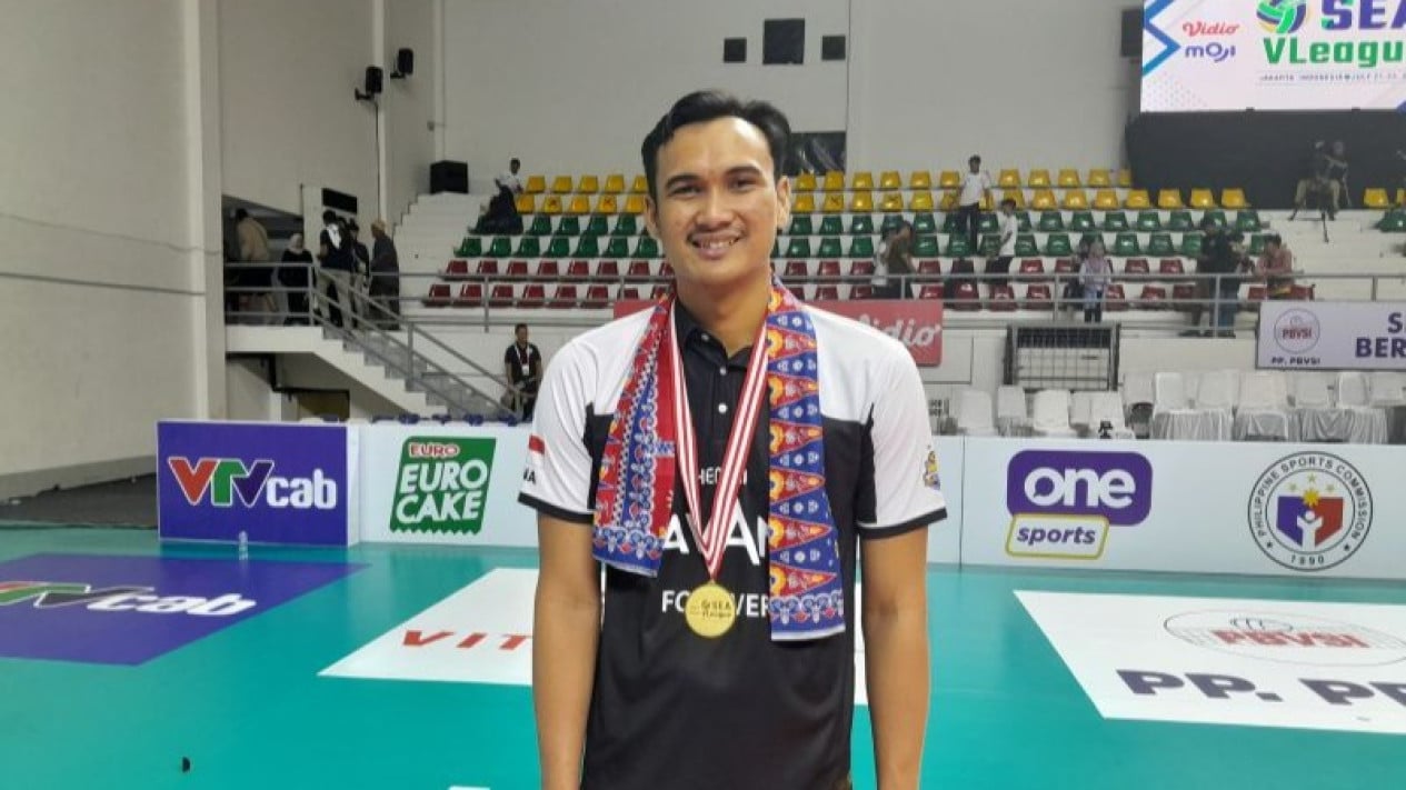 Pebola voli tim nasional Indonesia, Hendra Kurniawan, usai membawa Indonesia menjadi pemuncak klasemen putaran pertama pada SEA V League 2023..