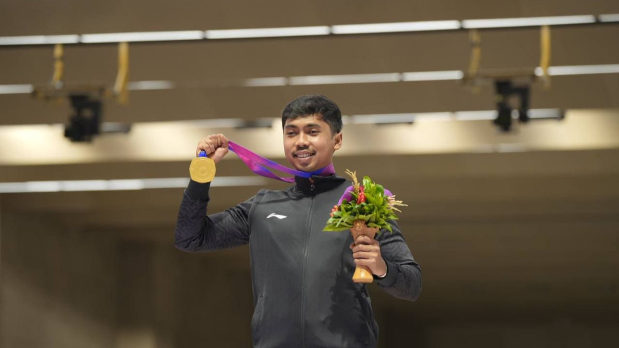 Hasil itu diraih dari tiga cabang olahraga, menembak, wushu dan dayung. Dimana atlet menembak Indonesia, Muhammad Sejahtera Dwi Putra berhasil meraih medali emas pertama kalinya dalam sejarah olahraga menembak Indonesia.