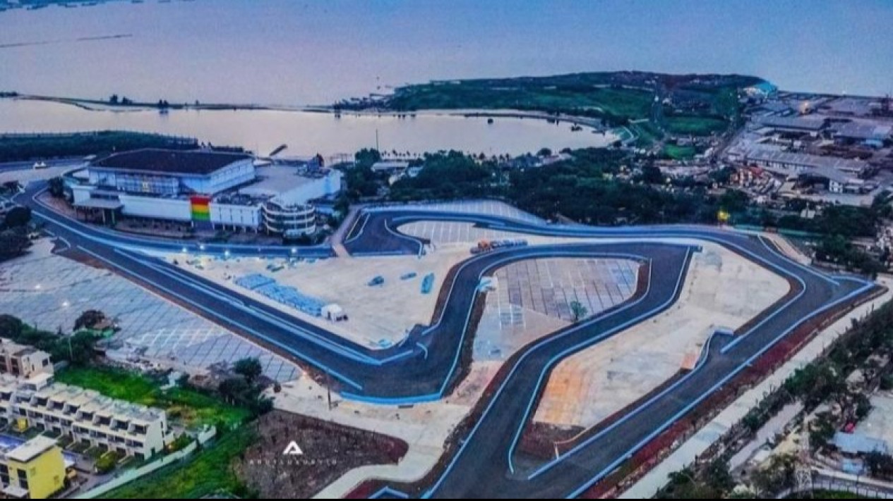 Saat ini, pembangunan sirkuit sepanjang 2,4 kilometer itu sudah 100 persen rampung dan tinggal fasilitas pendukung seperti panggung penonton, garasi pebalap hingga fasilitas lainnya yang ditargetkan selesai pada akhir Mei 2022.(ant/chm)