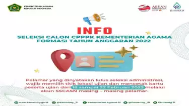 Jakarta, tvOnenews.com - Seleksi calon Pegawai Pemerintah Dengan Perjanjian Kerja (CPPPK) Kementerian Agama formasi tahun anggaran 2022 segera memasuki tahap Seleksi Kompetensi. Para peserta diminta untuk memilih titik lokasi dan mencetak kartu ujian.Â