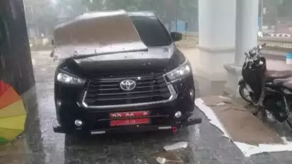 Hujan Deras, Mobil Dinas Istri Ketua DPRD Takalar Tertimpa Atap Plafon Rumah yang Runtuh