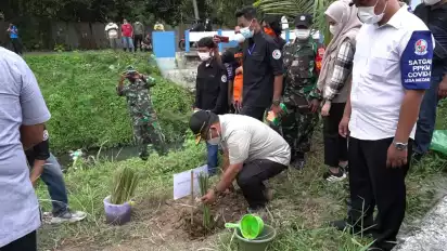 Deli Serdang, Sumut - Program Pengurangan Resiko Bencana (PRB) Desa Tangguh Bencana (Destana) Desa Medan Krio, Kabupaten Deli Serdang resmi dibuka dengan menanam 100 rumput vetiver atau  ‘akar wangi’, Minggu (17/10/2021).