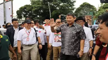 Dari pantauan tvonenews, Hashim datang dengan mengenakan kemeja batik bercorak hitam dan putih. Kedatangannya disambut oleh Ketua Umum Joman, Immanuel Ebenezer atau akrab disapa Noel.