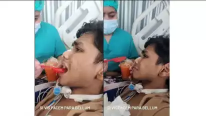 Sedangkan perawat di sebelahnya memberikan makan serta memberikan semangat untuk kesembuhan David.(viva/muu)