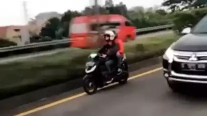 Bandung, Jawa Barat - Sepeda motor masuk tol kembali terjadi di Kota Bandung. Aksi motor masuk tol terekam kamera dan menjadi viral di media sosial. Video tersebut menunjukkan dua orang berboncengan sepeda motor pada Senin (18/10/2021).