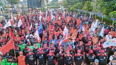 "Tepat sekira pukul 10.00 WIB tadi, Perppu Cipta Kerja telah disahkan oleh DPR RI," kata Riden Hatam Aziz, dari atas mobil komando, Selasa ini.
