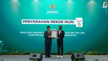Jakarta, tvOnenews.com - Badan Amil Zakat Nasional (BAZNAS) berhasil menyabet rekor Museum Rekor Indonesia (MURI) dalam kategori Penulisan Al-Qur'an oleh 1.000 Amil dengan metode follow the line.