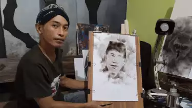 Sukabumi, Jawa Barat - Melukis adalah suatu kegiatan yang umum dilakukan menggunakan cat dan kuas. Namun berbeda dengan salah satu pelukis asal warga Kampung Selajambu RT 4 RW 1 Desa Sasagaran, Kecamatan Kebonpedes, Kabupaten Sukabumi ini. Dia mengganti cat lukis dengan jelaga yang berasal dari asap lampu minyak (centir).