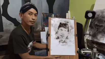 "Baru dua tokoh, itu bukan pesenan melainkan keinginan sendiri saja, selain melukis dua tokoh tersebut ada juga lukisan hewan dan lukisan potret teman-teman," kata Suryana.