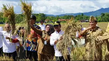 Klaten, tvOnenews.com - Menteri Pertanian Syahrul Yasin Limpo (Mentan SYL) menggelar panen raya padi di Desa Kalikebo, Kecamatan Trucuk, Kabupaten Klaten, Jawa Tengah. Kegiatan ini merupakan rangkaian kerja pemerintah dalam memastikan ketersediaan pangan khusus beras di bulan puasa dan lebaran mendatang dalam kondisi aman.