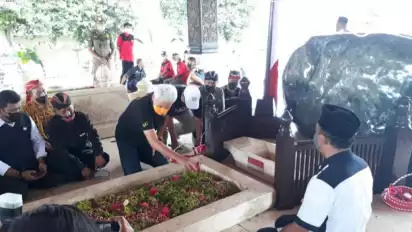 Di lokasi makam, Ganjar dan rombongan berdoa dan setelahnya tabur bunga. Ia juga sempat ke lokasi masjid di area makam, ke lokasi tempat istirahat lalu meninggalkan lokasi makam. (ant/ito)