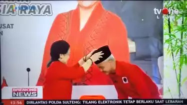 Penetapan ini langsung diumumkan oleh Ketua Umum PDIP Megawati Soekarnoputri. Setelah ditetapkan sebagai capres 2024, Ganjar langsung disematkan peci hitam oleh Megawati.