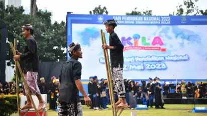 Jakarta, tvOnenews.com - Untuk pertama kalinya, anak-anak yang bersekolah di sekolah adat ikut hadir di upacara peringatan Hari Pendidikan Nasional (Hardiknas) di kantor Kementerian Pendidikan, Kebudayaan, Riset, dan Teknologi (Kemendikbudristek). Sebanyak 21 anak dari tiga sekolah adat menjadi peserta upacara peringatan Hardiknas 2023. Mereka berasal dari sekolah adat di Sumba Barat, Nusa Tenggara Timur; Banyuwangi, Jawa Timur; dan Jambi.