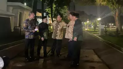 “Ketum-ketum parpol itu terlihat happy ya saya lihat malam ini dan nampaknya koalisi besar itu bakal terbentuk. Kita lihat ke depan, apakah besok akan ada hasil pasti dari pertemuan malam ini di istana,” jelas dia.