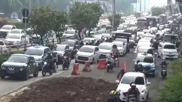 Kemacetan terjadi karena tumpukan tanah berada di tengah jalan. Sehingga para pengendara terpaksa melambatkan laju kendaraannya.