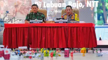 NTT, tvOnenews.com - TNI-Polri melaksanakan Apel Gelar Pasukan terkait pengamanan penyelenggaraan Konferensi Tingkat Tinggi (KTT) ASEAN di Labuan Bajo, Nusa Tenggara Timur (NTT). Kegiatan itu dipimpin langsung Panglima TNI Laksamana Yudo Margono dan Kapolri Jenderal Listyo Sigit Prabowo.