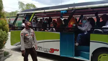 Bojonegoro Jawa Timur - Ratusan pelajar SMK dan SMP di Kecamatan Dander, Bojonegoro, Jawa Timur diangkut mengendarai mobil wisata untuk mendatangi lokasi vaksinator di puskesmas setempat. Ini dilakukan agar anak-anak itu mau dan tidak takut divaksinasi Covid-19. Namun trik ini ternyata tidak mempan 100 persen karena beberapa anak tetap menangis histeris.