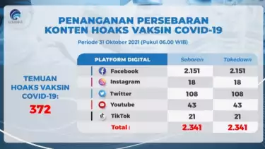 Sementara itu, mengenai persebaran konten hoaks Vaksin Covid-19, pihak Kominfo menemukan sebanyak 372 kasus.