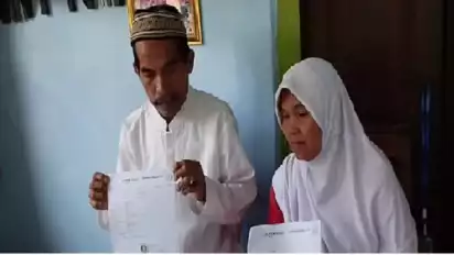 Jakarta, tvOnenews.com-Duduk di kursi kayu, Nana Nasrudin hanya terdiam memandangi istrinya yang sibuk membuka berkas berkas pembayaran biaya ibadah haji pada sebuah bank pemerintah yang terkumpul pada sebuah map plastik transparan. Tatapan matanya nampak kosong memandangi berkas berkas yang tengah ditunjukan istrinya pada kontributor tvOnenews.com, Azizi Erfan. Pasangan calon jemaah haji asal Desa kelurahan cijoho, Kecamatan Kuningan, Kabupaten Kuningan, ini terpaksa harus menunda keberangkatan ke tanah suci pada Ibadah Haji tahun 2023 karena terkendala biaya.