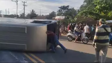 Kecelakaan terjadi karena bus hendak menghindari sepeda motor hingga oleng dan sang sopir tak dapat mengendalikan laju kendaraan yang mengakibatkan bus terbalik pada Minggu (31/10/2021) sekitar pukul 16.15 WIB.