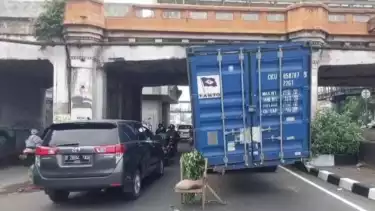 Truk Kontainer Tersangkut Kolong Jembatan Perlintasan Kereta di Matraman, Warga: Sudah Kami Teriaki