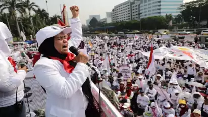 "Selama 3 tahun masa pandemi, para tenaga medis dan kesehatan selalu berada di garis depan dan benteng terakhir untuk melindungi pemerintah dan masyarakat. Tidak sedikit nyawa tenaga medis dan kesehatan yang menjadi korban," teriak orator di atas mobil komando, Jakarta Pusat, pada Senin (5/6/2023).