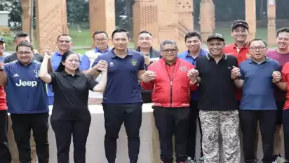 Saat Puan akhirnya tiba di lokasi pertemuan, suasana menjadi lebih meriah. Kemudian, disambut sorak-sorai dari awak media tatkala AHY-Puan bersalaman. Bahkan, AHY tampak menyambut kedatangan Puan.
