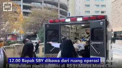 "Saya, Annisa, Mas Ibas dan Aliya, berkesempatan mendampingi beliau sejak proses pemeriksaan awal pukul 05.30, hingga mengantar beliau pasca operasi ke ruang perawatan dan pemulihan di RS St Marys, masih dalam lingkungan komplek RS Mayo Clinic. Tadi hadir juga sahabat Bapak SBY, Marsekal TNI (Purn) Djoko Suyanto beserta istri, yang ikut memberikan dukungan moril kepada beliau, sebelum pelaksanaan operasi," kata AHY.