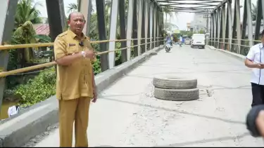 Langkat, tvOnenews.com - Pelaksana Tugas (Plt) Bupati Langkat Syah Afandin meninjau langsung kondisi jembatan Batang Sarangan yang berada di Kecamatan Batang Sarangan Kabupaten Langkat, Senin (17/7/2023).