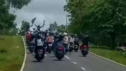 Konvoi puluhan pengendara motor di Jalur Jalan Lintas Selatan (JJLS), Gunungkidul, Yogyakarta, pada Sabtu (13/11/2021), kembali membuat ulah. Konvoi ini dilakukan dengan ugal ugalan, memenuhi jalan sambil menggeber-geberkan kendaraannya dan membahayakan pengguna jalan lain.