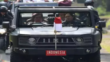 Malang, tvOnenews.com - Menteri Pertahanan Prabowo Subianto menyupiri kendaraan taktis (rantis) Maung 4x4 bersama Presiden Joko Widodo (Jokowi), Ibu Negara Iriana Jokowi, dan Menteri BUMN Erick Thohir saat meninjau gudang munisi milik PT Pindad di Turen, Malang, Jawa Timur, Senin (24/7/2023).