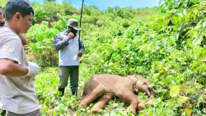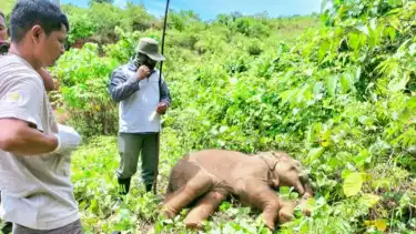 "Tim berhasil menemukan anak gajah liar tersebut dan melakukan upaya pembiusan untuk dapat dilakukan penanganan medis dan pelepasan jerat yang masih menempel di belalainya," kata Agus Arianto.