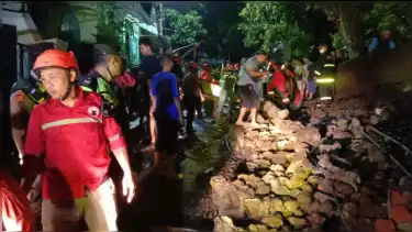 Malang, Jawa Timur- Sebuah tembok Tembok Pagar Rumah di Jalan Jaksa Agung Suprapto Gang 1, Klojen, Kota Malang roboh pada Minggu (14/11) pukul 20.00 WIB. Seorang wanita dan dua orang anaknya yang melintas menggunakan sepeda motor tertimpa reruntuhan tembok tersebut.