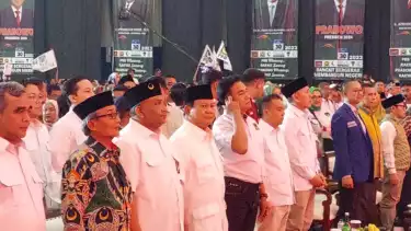 Dari pantuan tvOnenews, saat Prabowo Subianto memasuki gedung acara milad tersebut, orang orang di dalam ruangan itu meneriaki Ketum Gerindra itu presiden.