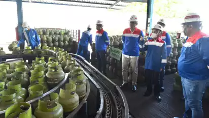 Denpasar, tvOnenews.com - Direktur Utama Pertamina, Nicke Widyawati melanjutkan pemantauan pasokan dan distribusi LPG di wilayah Bali dengan inspeksi mendadak (sidak) ke SPPBE di Pendungan, Denpasar sore ini Minggu (30/7/2023).