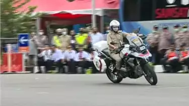 Unjuk gigi naik moge itu dilakukan usai acara apel. Anies, Fadil, dan Mulyo memperlihatkan keahlian mereka naik moge. Dengan lancar ketiganya meliuk-liuk di antara susunan cone block berwarna oranye.