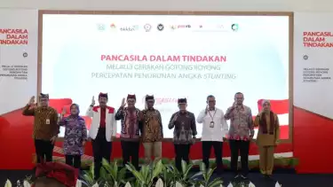 tvOnenews.com - Badan Pembinaan Ideologi Pancasila (BPIP) gerakkan seluruh unsur untuk bergotong royong tekan kasus stunting di Indonesia. Hal tersebut disampaikan Kepala BPIP, Prof. Drs. K.H. Yudian Wahyudi, M.A., Ph.D. saat peluncuran Gerakan Gotong Royong Percepatan Penurunan Stunting di Pendopo Sabha Swagata Blambangan, Kab. Banyuwangi, Selasa (1/8).