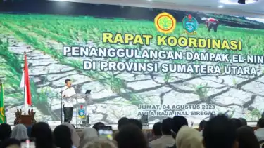 “Hari ini saya bersama Bapak Gubernur Sumatera Utara memenuhi perintah Bapak Presiden untuk mempersiapkan seluruh langkah mengantisipasi kebutuhan pangan nasional menghadapi El- Nino,” kata Mentan SYL pada acara Rapat Koordinasi (Rakor) Antisipasi Dampak El- Nino di Sumatera Utara(Sumut) bertempat di Aula Raja Inal Kantor Gubernur Sumut, Jumat (4/8/23).