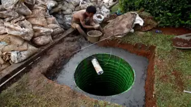 Pekerja Sedang Mengerjakan Pembuatan Sumur Resapan