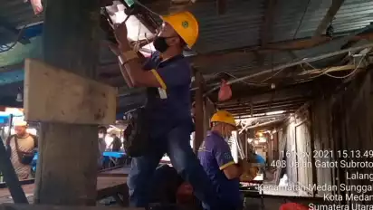 Medan, Sumatera Utara - Petugas Penertiban Pemakaian Tenaga Listrik (P2TL) PLN Ranting Kecamatan Medan Sunggal membongkar praktik pencurian arus listrik. Praktik disebutkan telah sekian lama berjalan dan mirisnya dibisniskan ke pedagang Pasar Kampunglalang, Medan. Penertiban berlangsung di Jalan Klambir Lima, Kecamatan Medan Sunggal, Selasa (16/11/2021) sore.