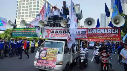 Padati Jalan MH Thamrin Demo Buruh Ajak Pekerja Kantoran Ikut Orasi
