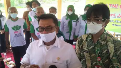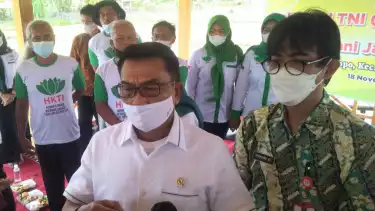Semarang, Jawa Tengah - Ketua Umum Himpunan Kerukunan Tani Indonesia (HKTI), Jenderal TNI (Purn) Moeldoko meminta Kementerian Pertanian membuat pola dan peta, terkait pemasaran bawang merah di dalam negeri. Tujuannya, agar petani bawang merah tidak merugi saat panen raya. Pernyataan itu dikatakannya usai berdialog dengan petani di Desa Wonolopo di Kecamatan Mijen Kota Semarang, Kamis (18/11/21).