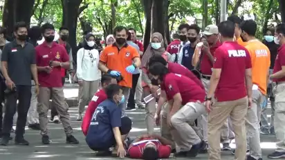Solo, Jawa Tengah - Polres Surakarta menggelar rekontruksi meninggalnya mahasiswa UNS Gilang Endi Saputra saat mengikuti diklatsar Menwa UNS di Stadion Manahan Solo, Kamis (18/11). Sebanyak 69 adegan diperagakan dalam rekontruksi tersebut. Dari awal kegiatan hingga meninggalnya Gilang Endi Saputra.