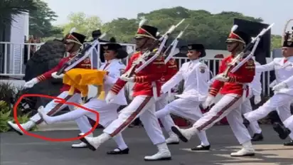 Jakarta, tvOnenews.com - Baru-baru ini beredar foto detik-detik sepatu sang pengibar bendera Merah Putih, Lilly Indriani lepas, setelah mengibarkan bendera Merah Putih, di Istana Negara, Jakarta, Kamis (17/8/2023).