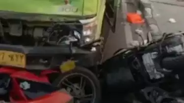 Dalam video tersebut seorang warga yang merekam turut serta menarasikan aksi truk menabrak sejumlah pemotor itu ditengarai lawan arus.