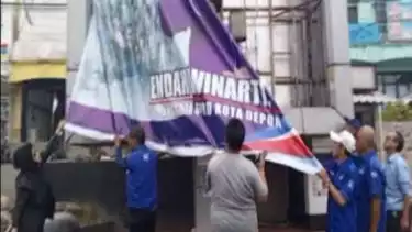 Anggota Demokrat Kota Depok Mencopot Baliho Kampanye Bergambar Anies Baswedan dan Mengguntingnya Beramai-ramai