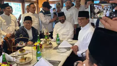 Anies Baswedan dan Surya Paloh Tiba di Hotel Majapahit, Surabaya (tvOne)