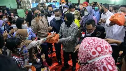Di sini, Mensos membagikan sembako, makanan, dan mainan kepada anak-anak. Mensos juga tampak bergembira dengan bermain dan bernyanyi bersama anak-anak dengan iringan lagu.