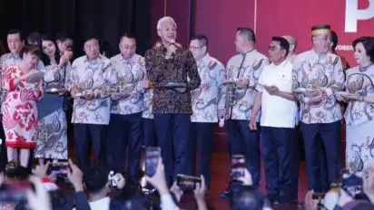 Selain Ganjar Pranowo yang menghadiri puncak perayaan HUT Ke-25 PSMTI, hadir juga Kepala Staf Kepresidenan (KSP) Moeldoko dan Ketua Umum Perindo Hary Tanoesoedibjo, dan beberapa tokoh penting lainnya. (ant/aag)
